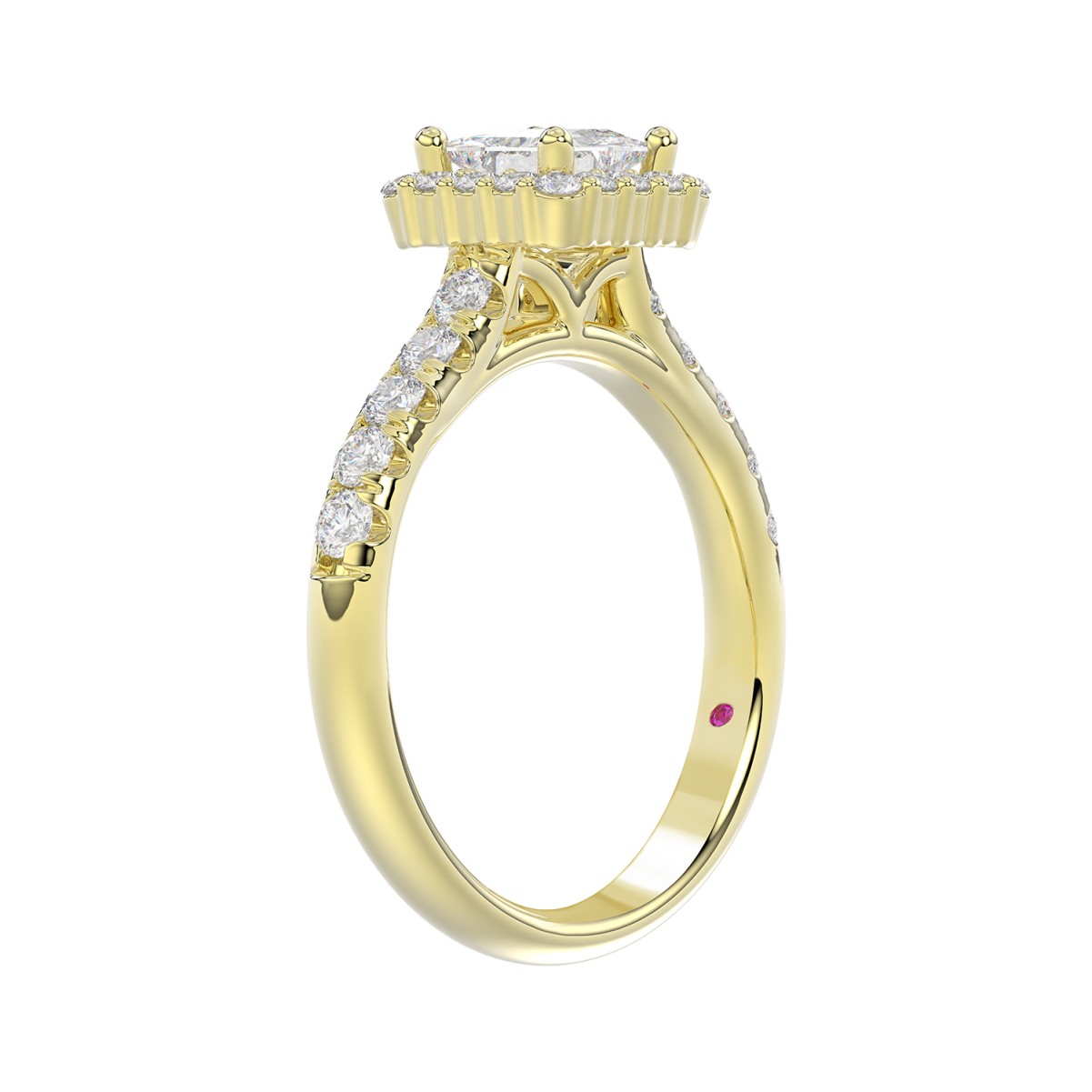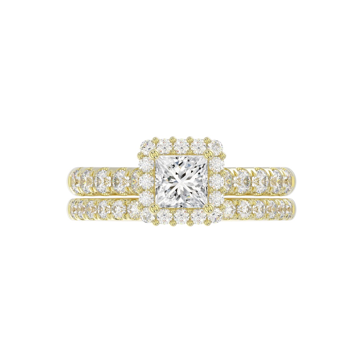 18K YELLOW GOLD 1 5/8CT ROUND/PRINCESS DIAMOND LADIES BRIDAL SET(CENTER STONE PRINCESS DIAMOND 3/4CT)