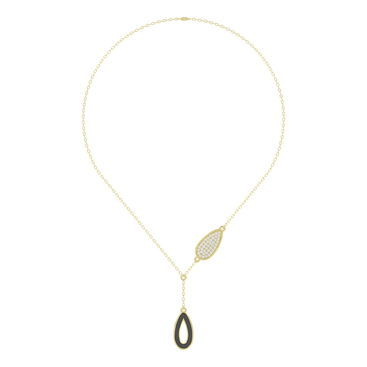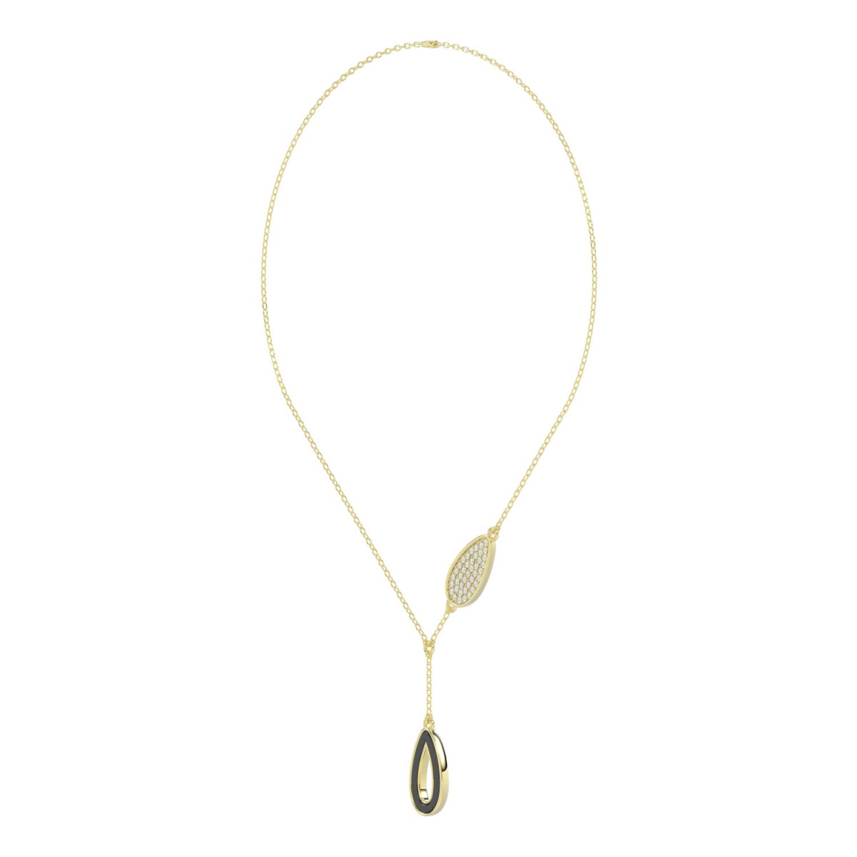 18K YELLOW GOLD 1/6CT ROUND DIAMOND LADIES NECKLACE (MIDNIGHT BLACK ENAMEL)