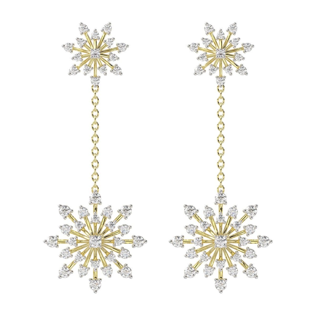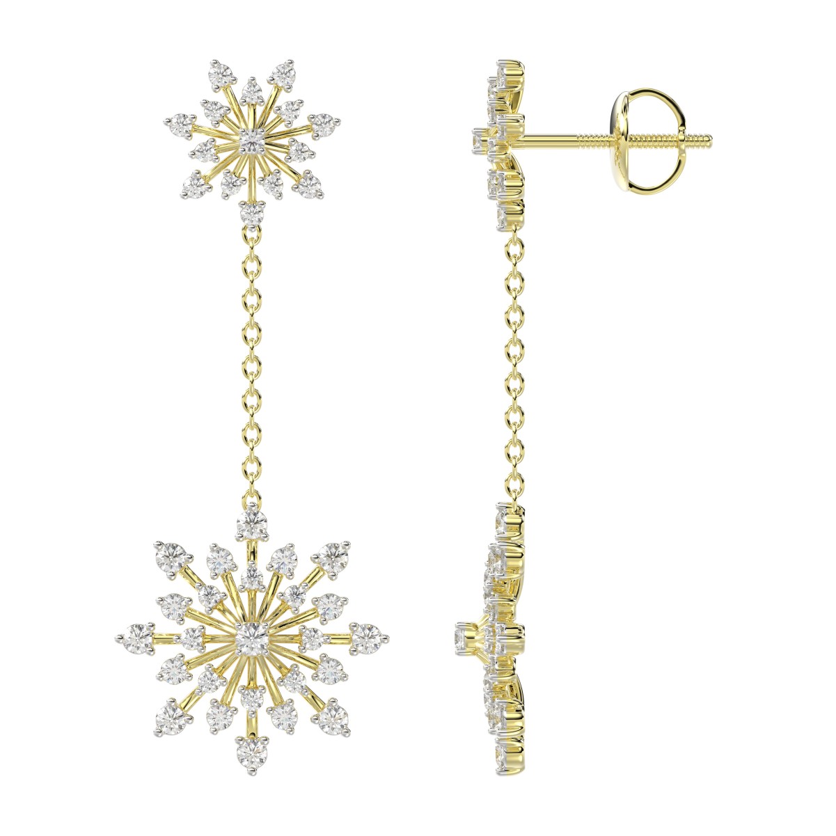 18K YELLOW GOLD 1CT ROUND DIAMOND LADIES EARRINGS