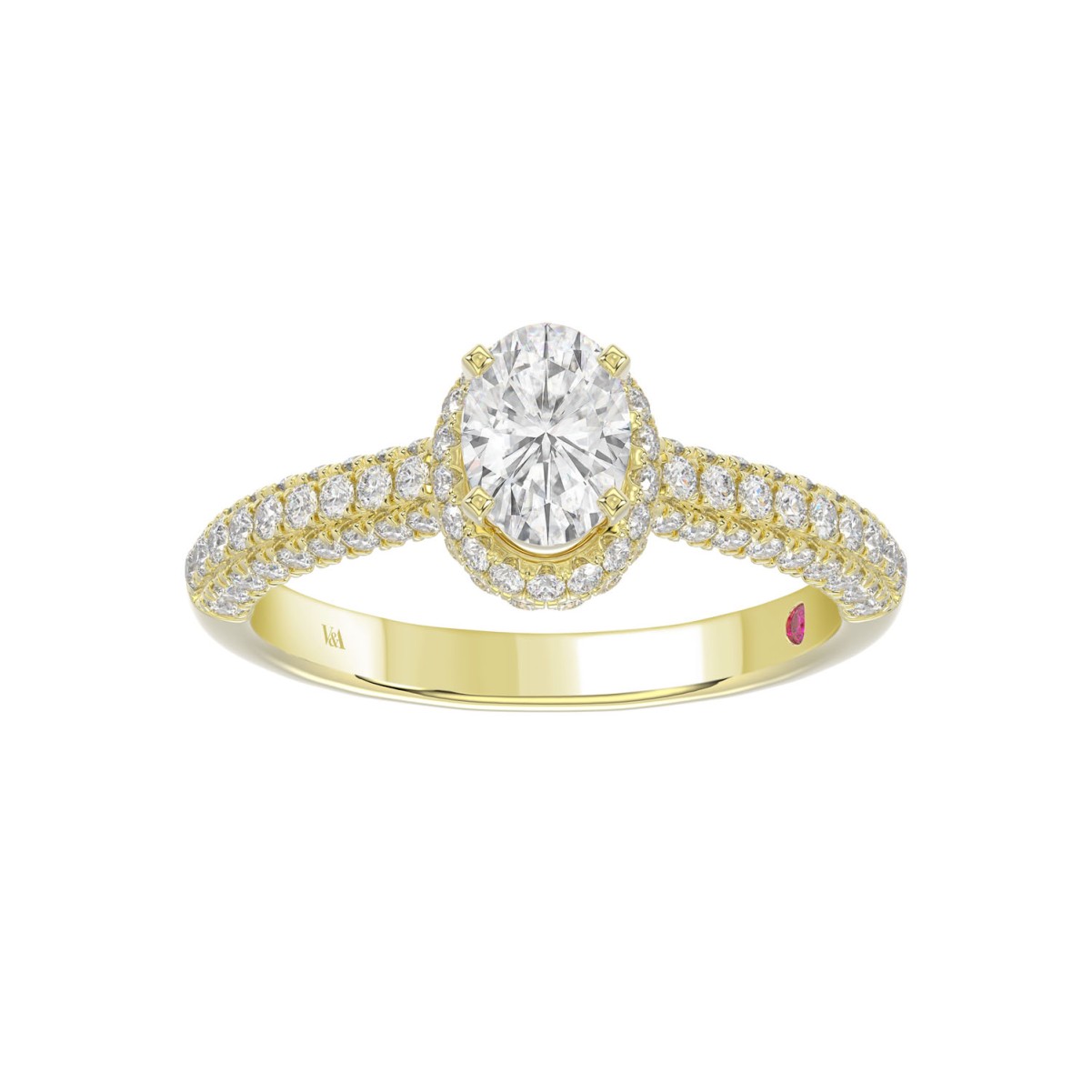 18K YELLOW GOLD 1CT ROUND/OVAL DIAMOND LADIES RING( CENTER STONE OVAL DIAMOND 1/2 CT)