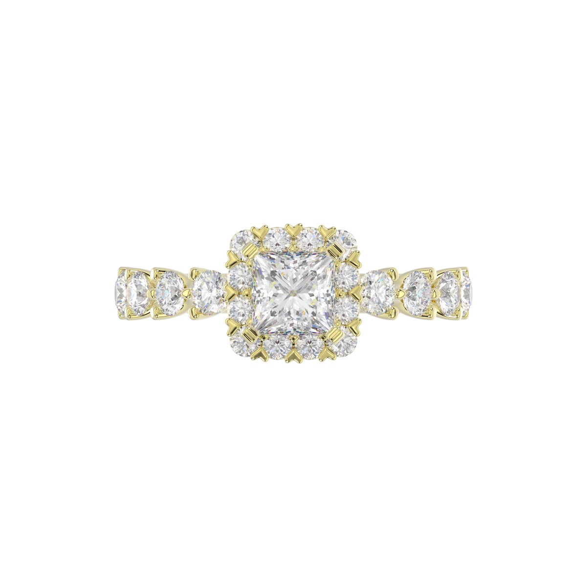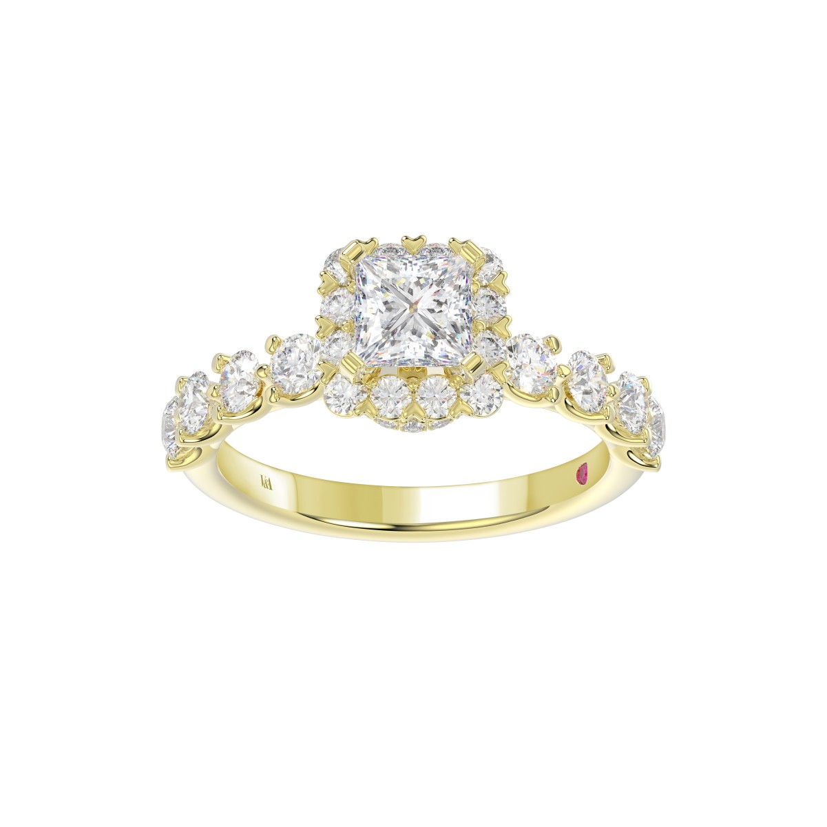 18K YELLOW GOLD 2 1/2CT ROUND/PRINCESS DIAMOND SEMI MOUNT LADIES RING (CENTER STONE PRINCESS DIAMOND 1.00CT)