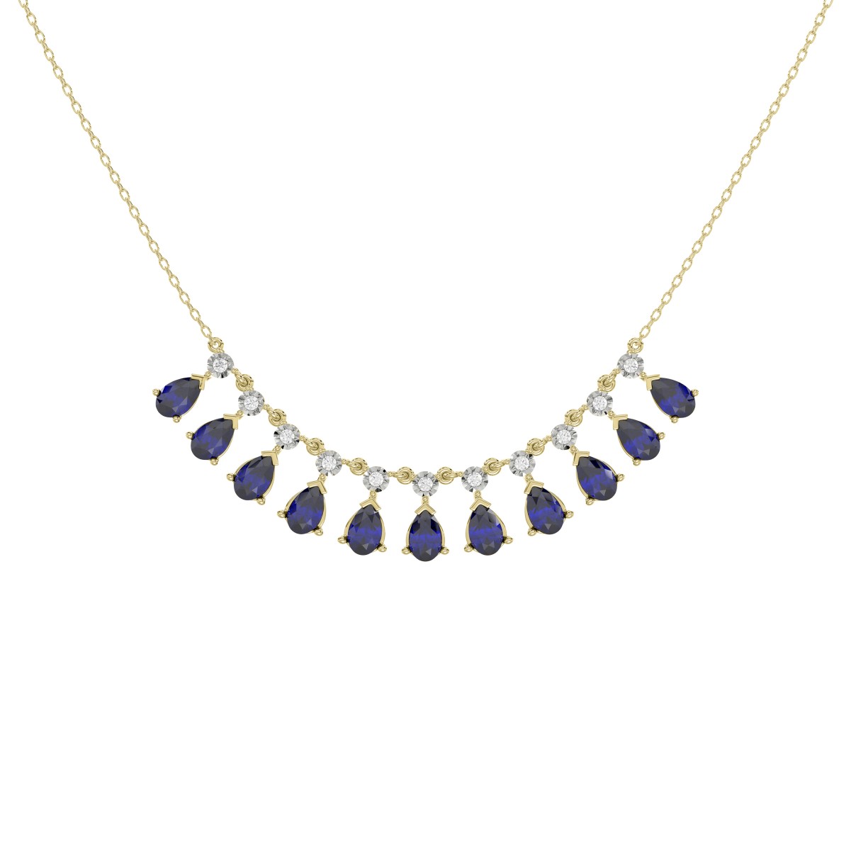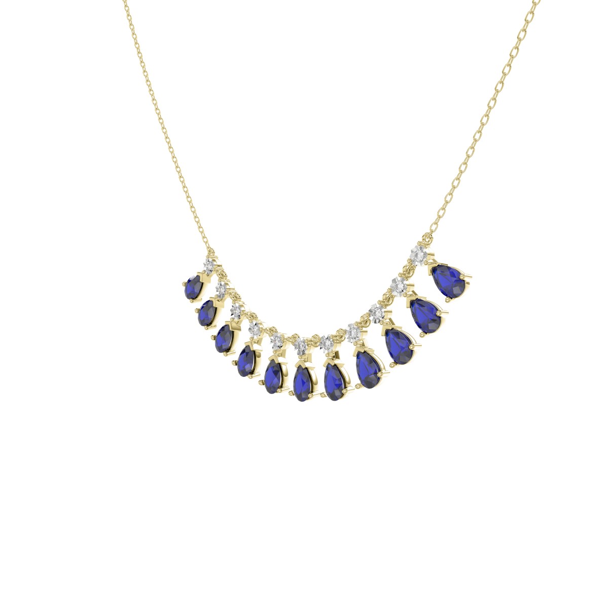 18K YELLOW GOLD 2 7/8CT ROUND/PEAR DIAMOND LADIES NECKLACE(COLOR STONE PEAR SAPPHIRE DIAMOND 2 7/8CT)