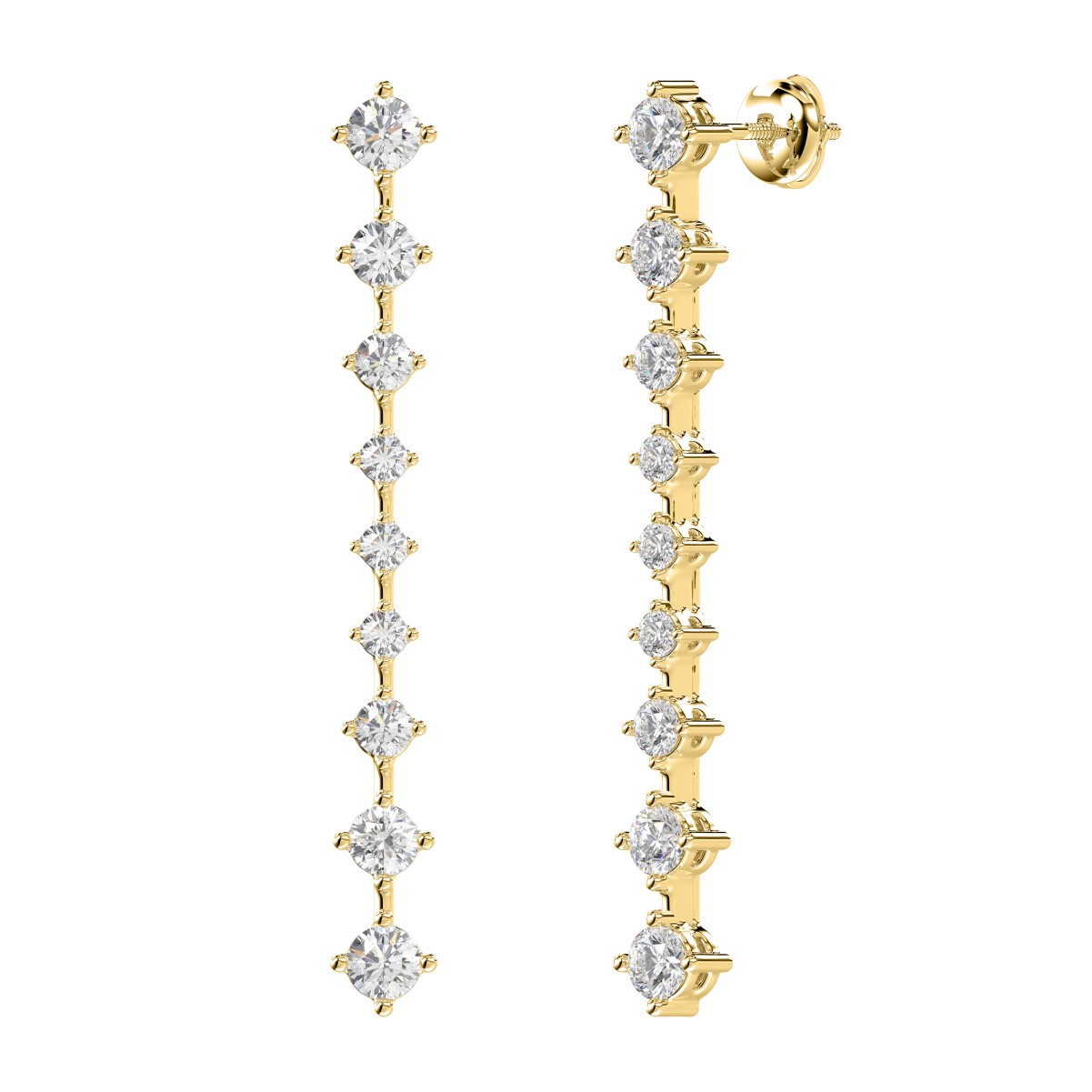 18K YELLOW GOLD 2CT ROUND DIAMOND LADIES EARRINGS