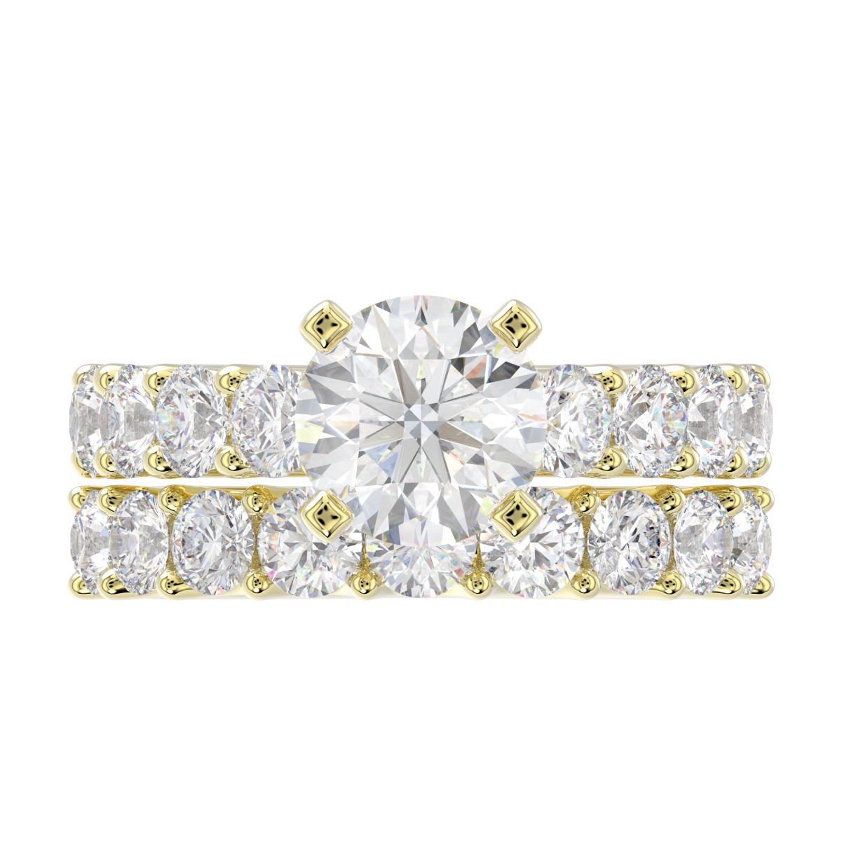 18K YELLOW GOLD 3.00CT ROUND DIAMOND SEMI MOUNT LADIES BRIDAL SET (CENTER STONE ROUND DIAMOND 2.00CT)