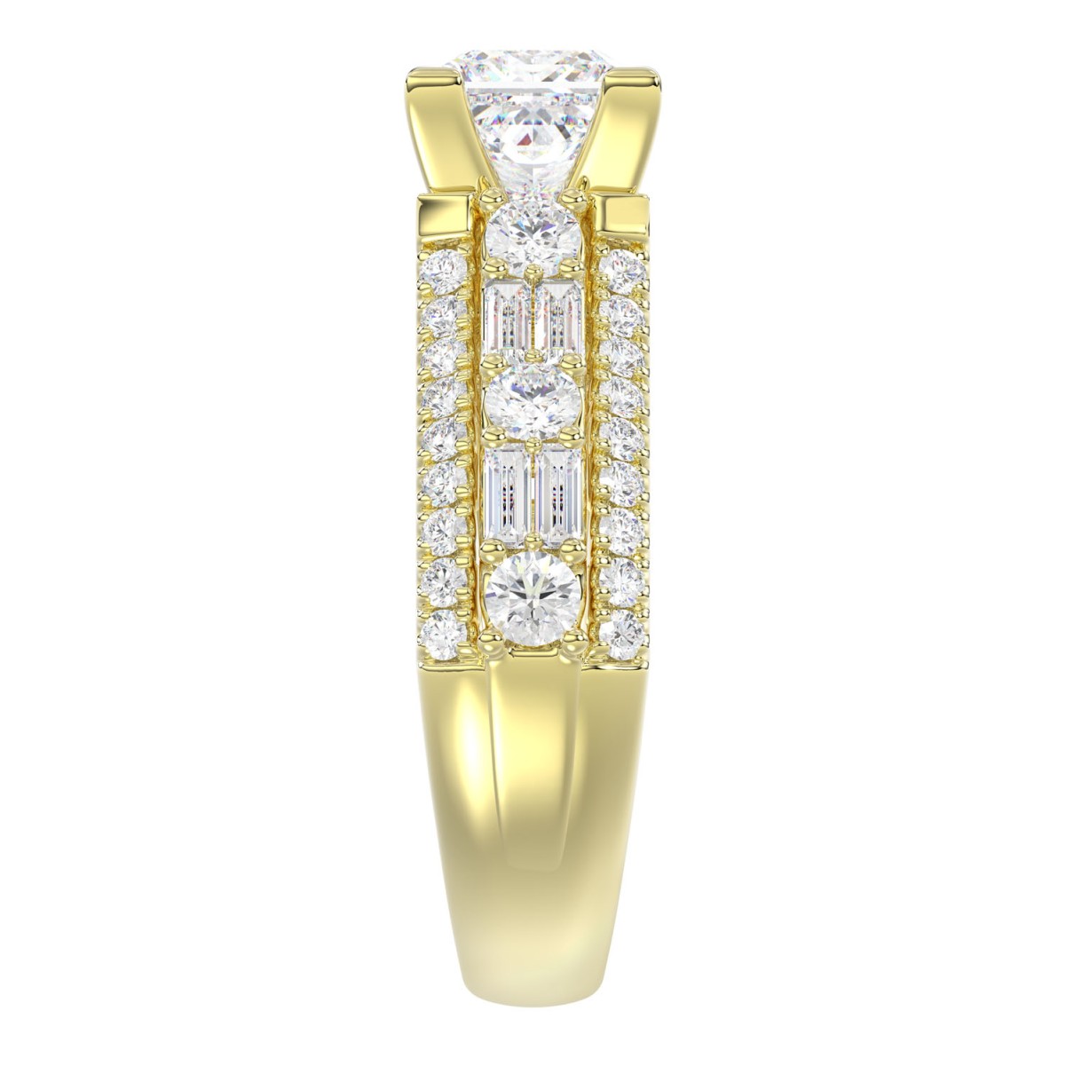 18K YELLOW GOLD 3 1/4CT ROUND/PRINCESS/BAGUETTE DIAMOND LADIES SEMI MOUNT RING(CENTER STONE PRINCESS DIAMOND 2CT)