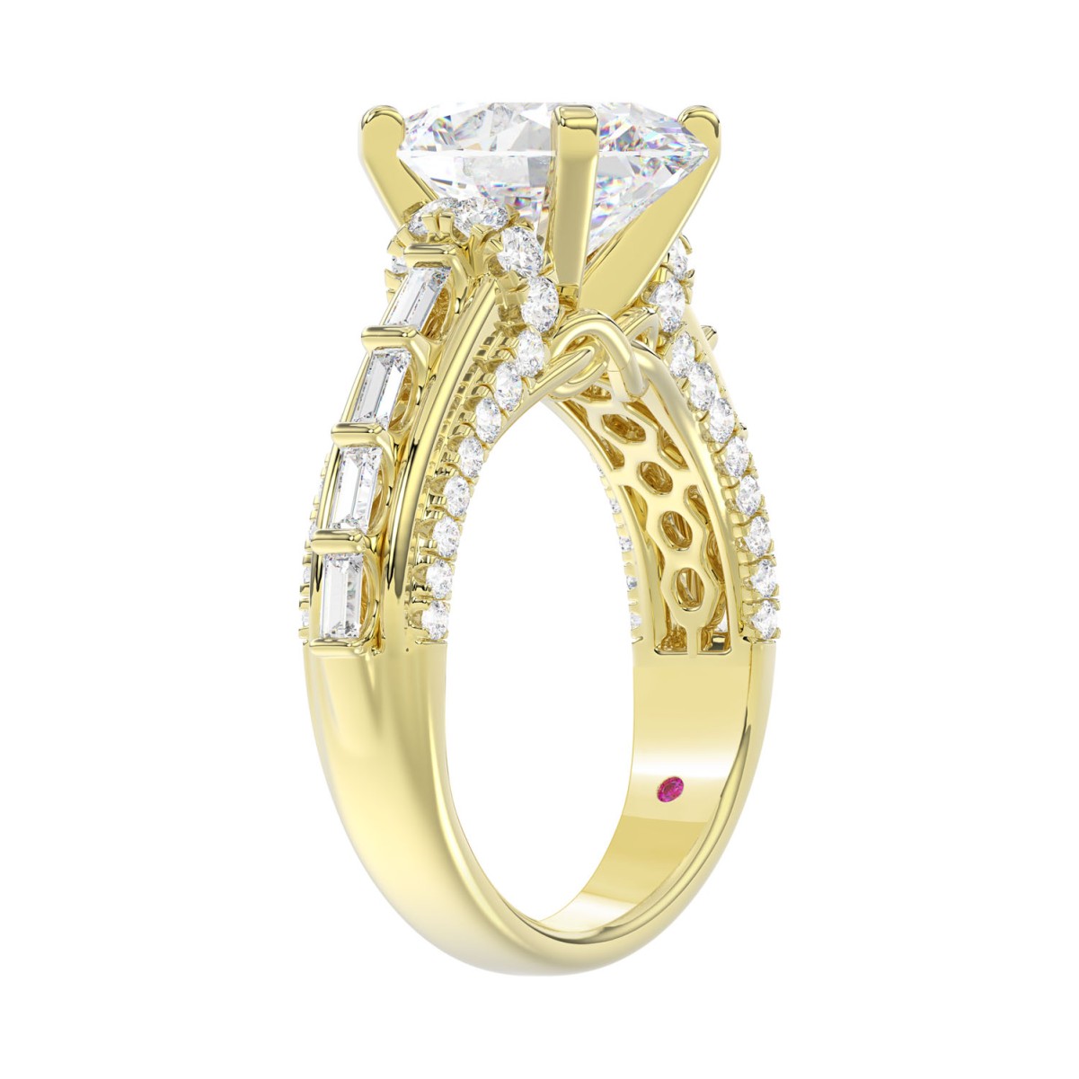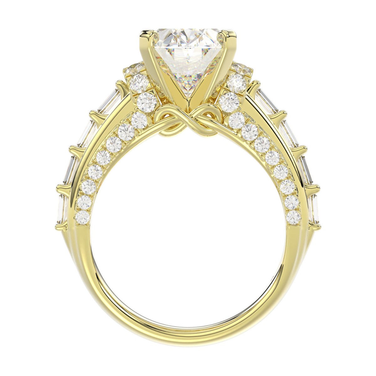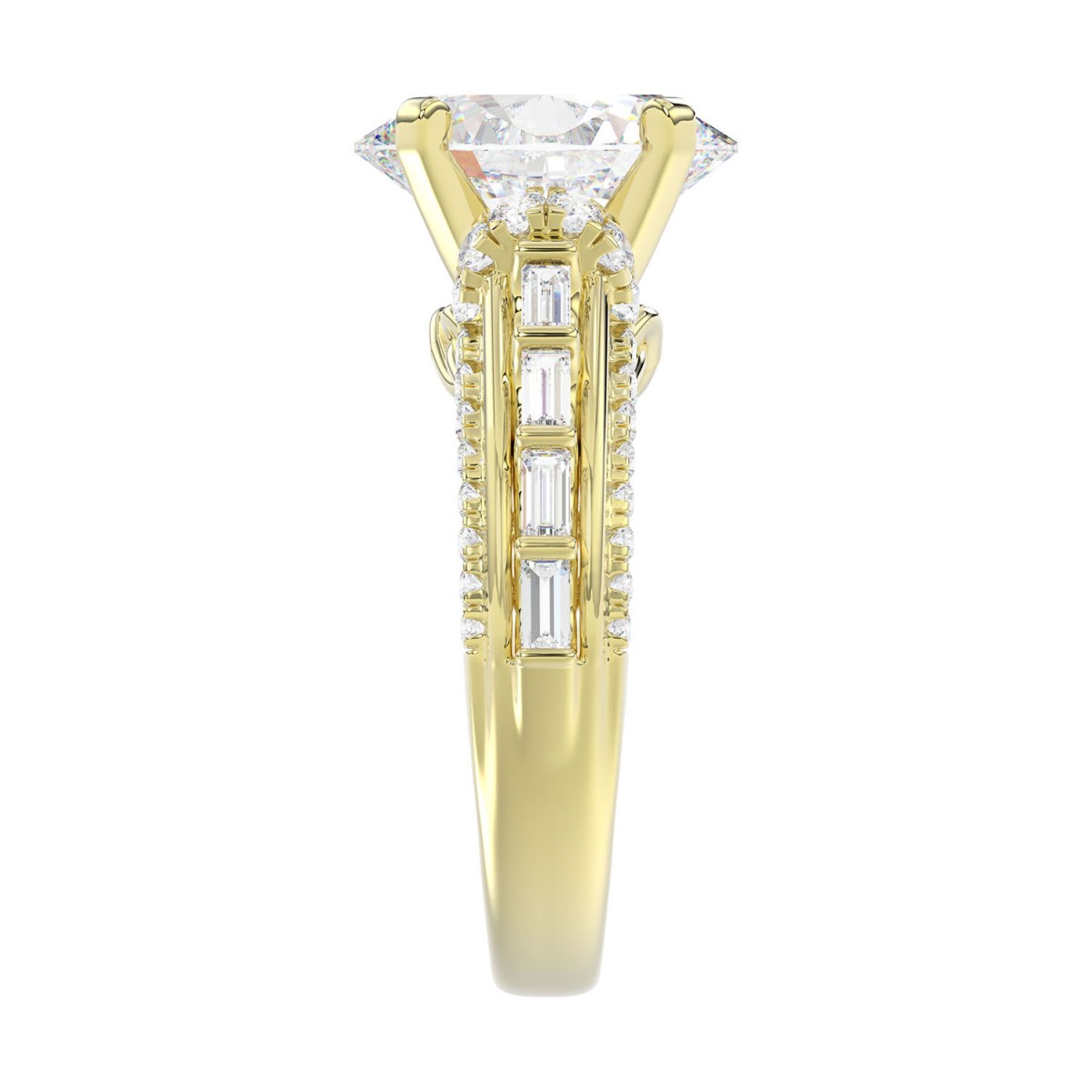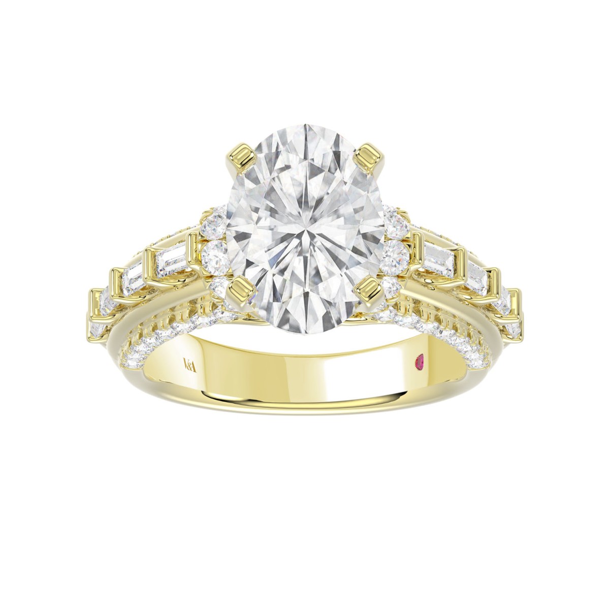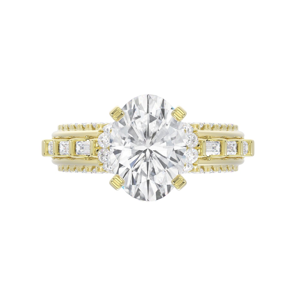 18K YELLOW GOLD 3 3/4CT ROUND/BAGUETTE/OVAL DIAMOND LADIES RING(CENTER STONE OVAL DIAMOND 3CT)