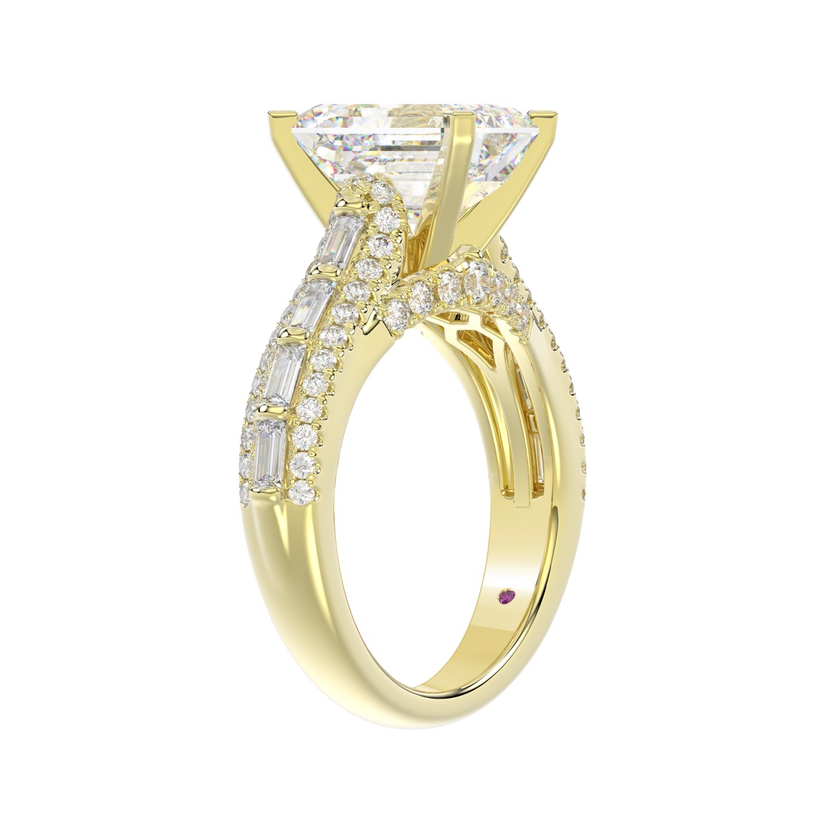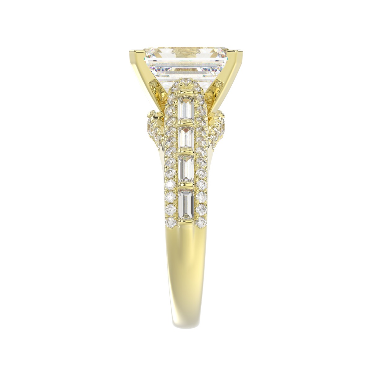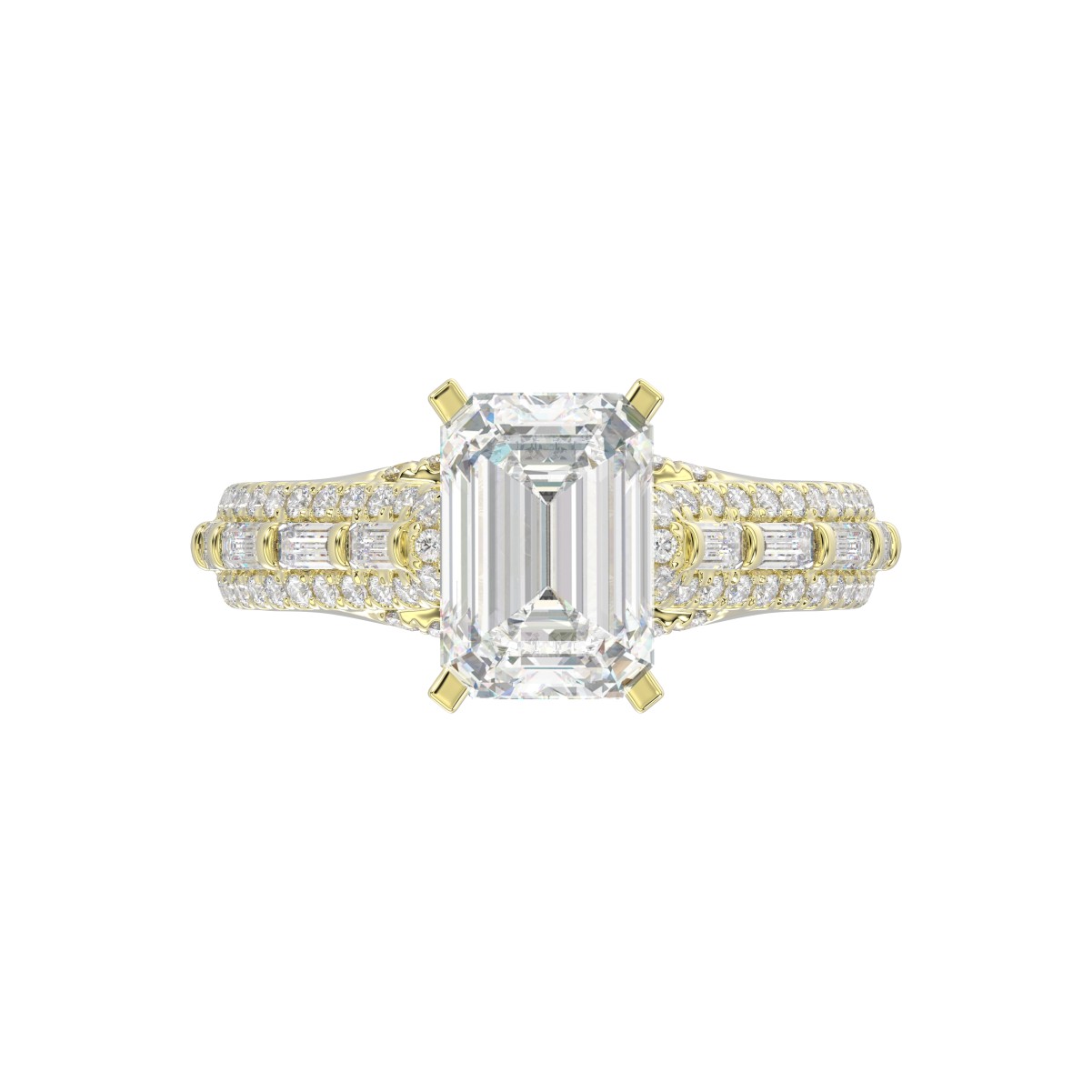 18K YELLOW GOLD 3/4CT ROUND/BAGUETTE/EMERALD DIAMOND LADIES SEMI MOUNT RING