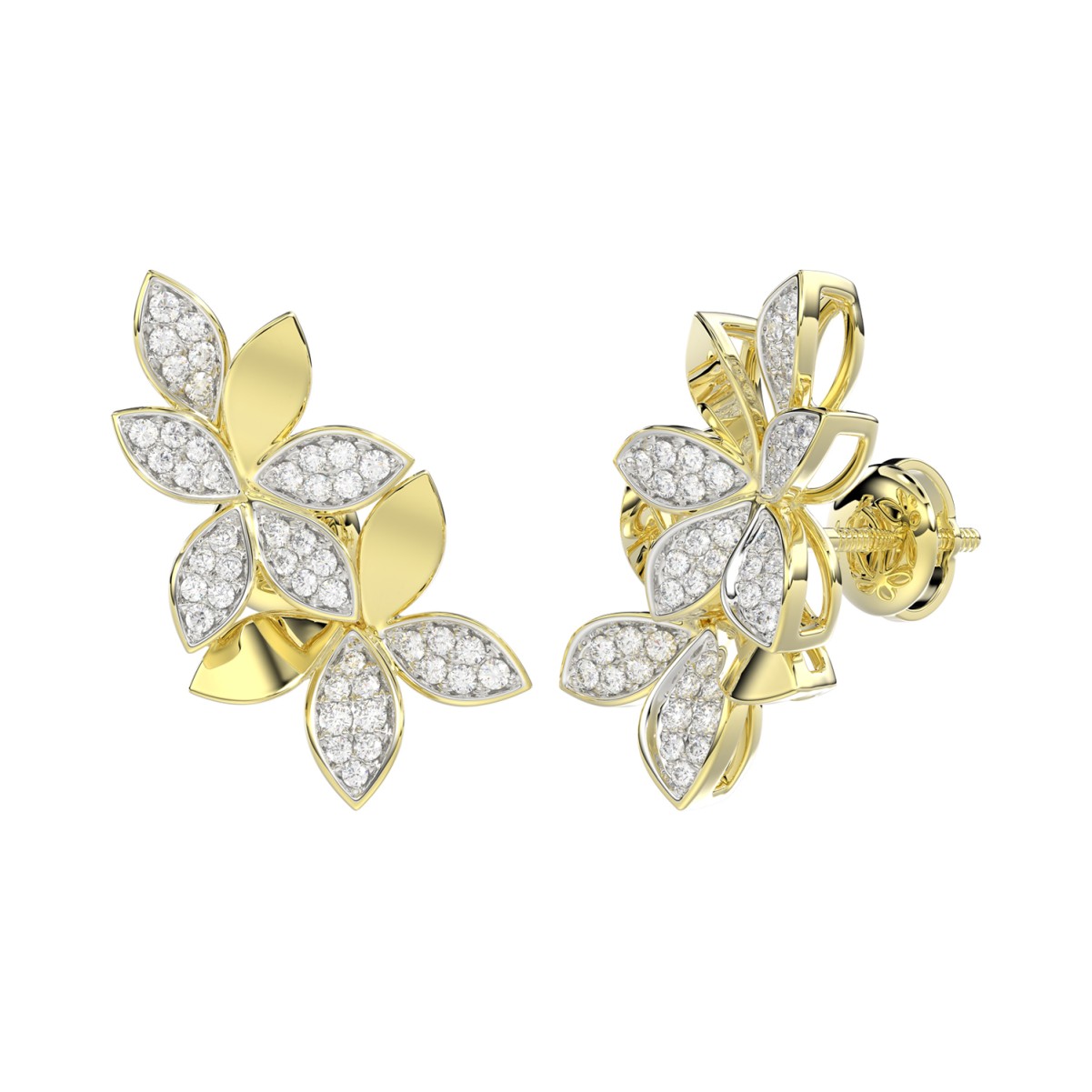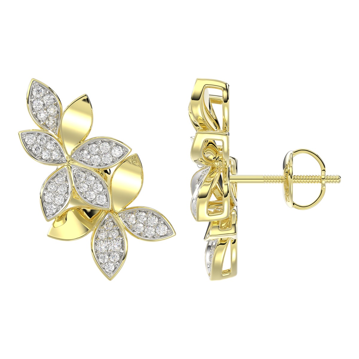 18K YELLOW GOLD 3/4CT ROUND DIAMOND LADIES EARRINGS