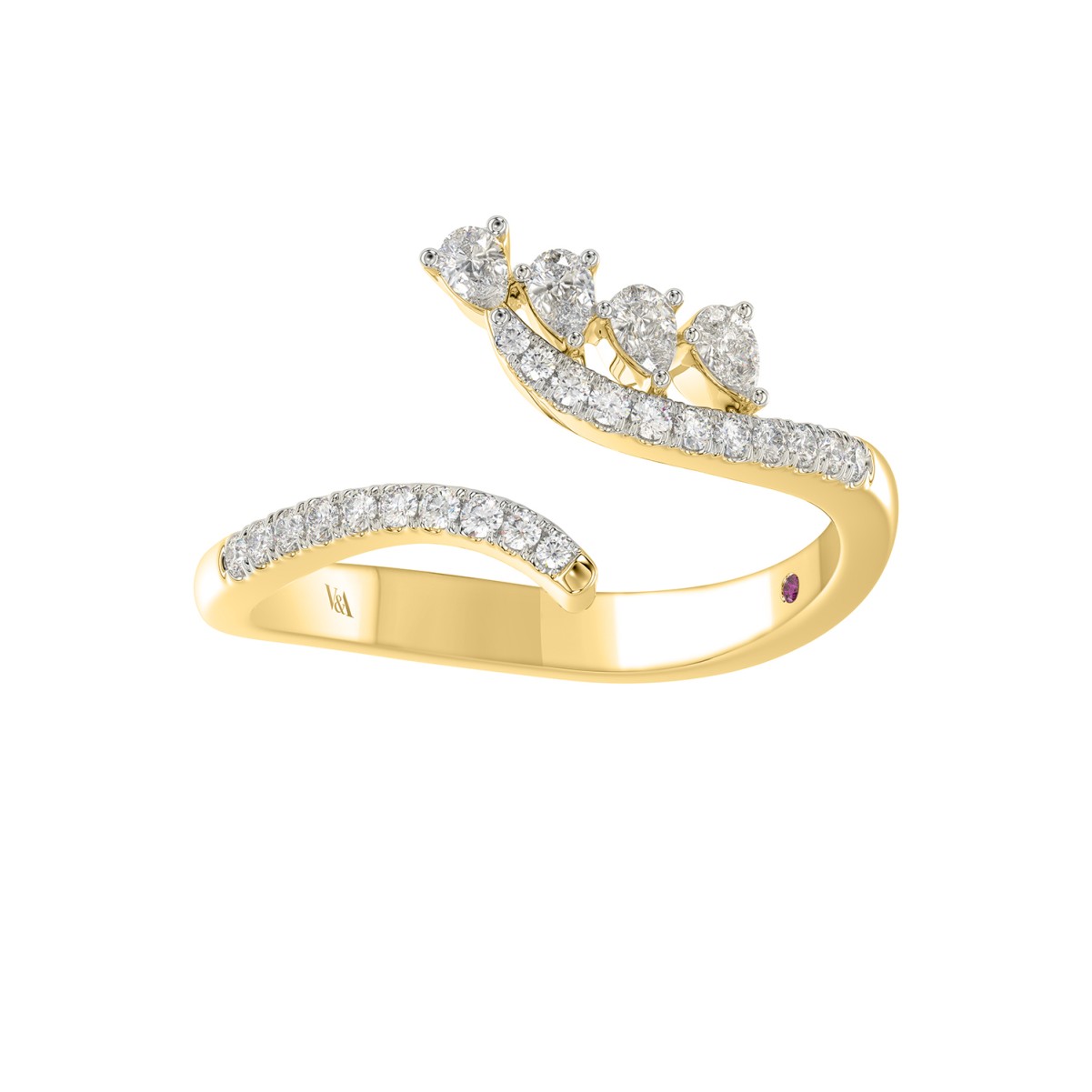 18K YELLOW GOLD 3/8CT ROUND/PEAR DIAMOND LADIES RING