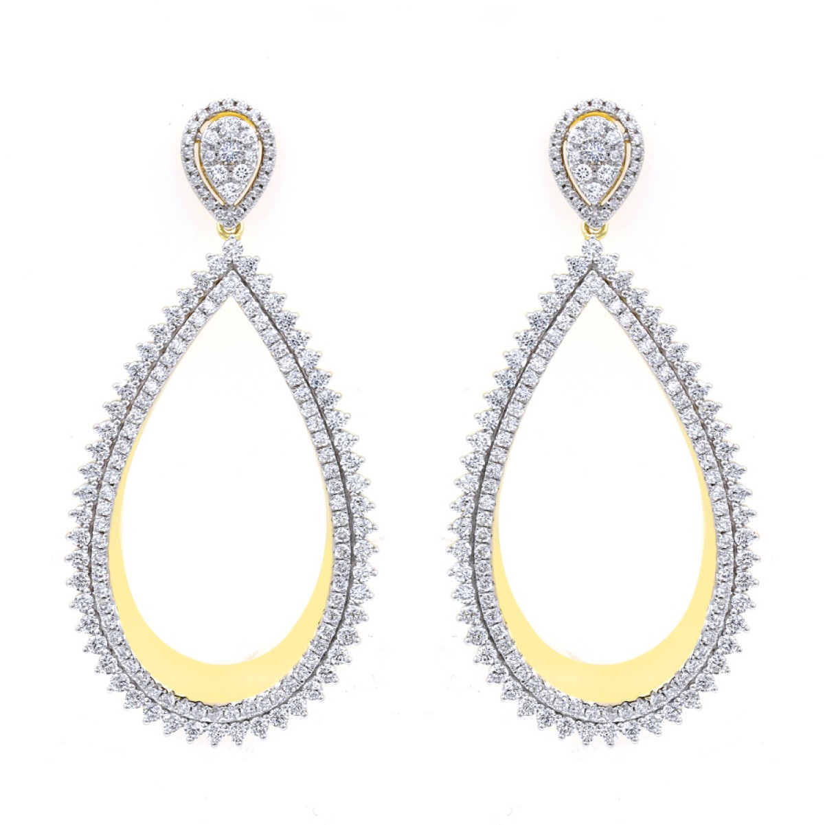 18K YELLOW GOLD 3CT ROUND DIAMOND LADIES EARRINGS
