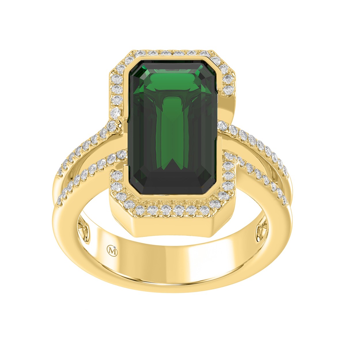 18K YELLOW GOLD 4 1/4CT ROUND/EMERALD DIAMOND LADIES RING(COLOR STONE EMERALD DIAMOND 4 CT)