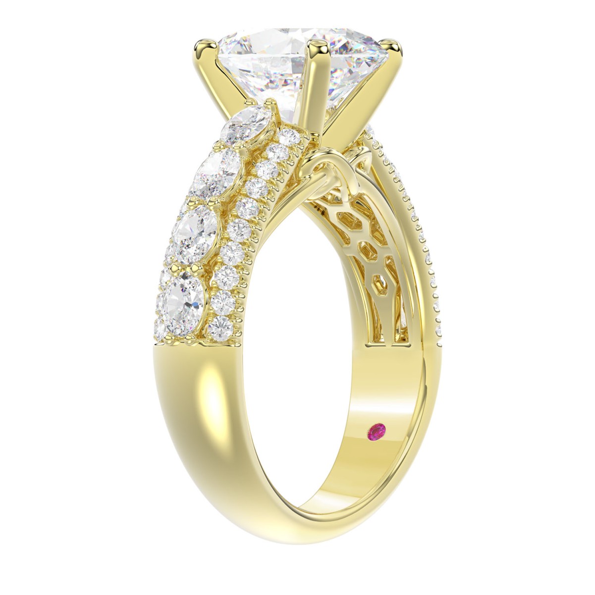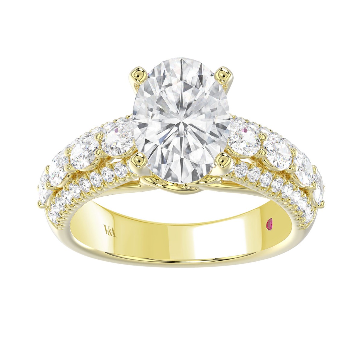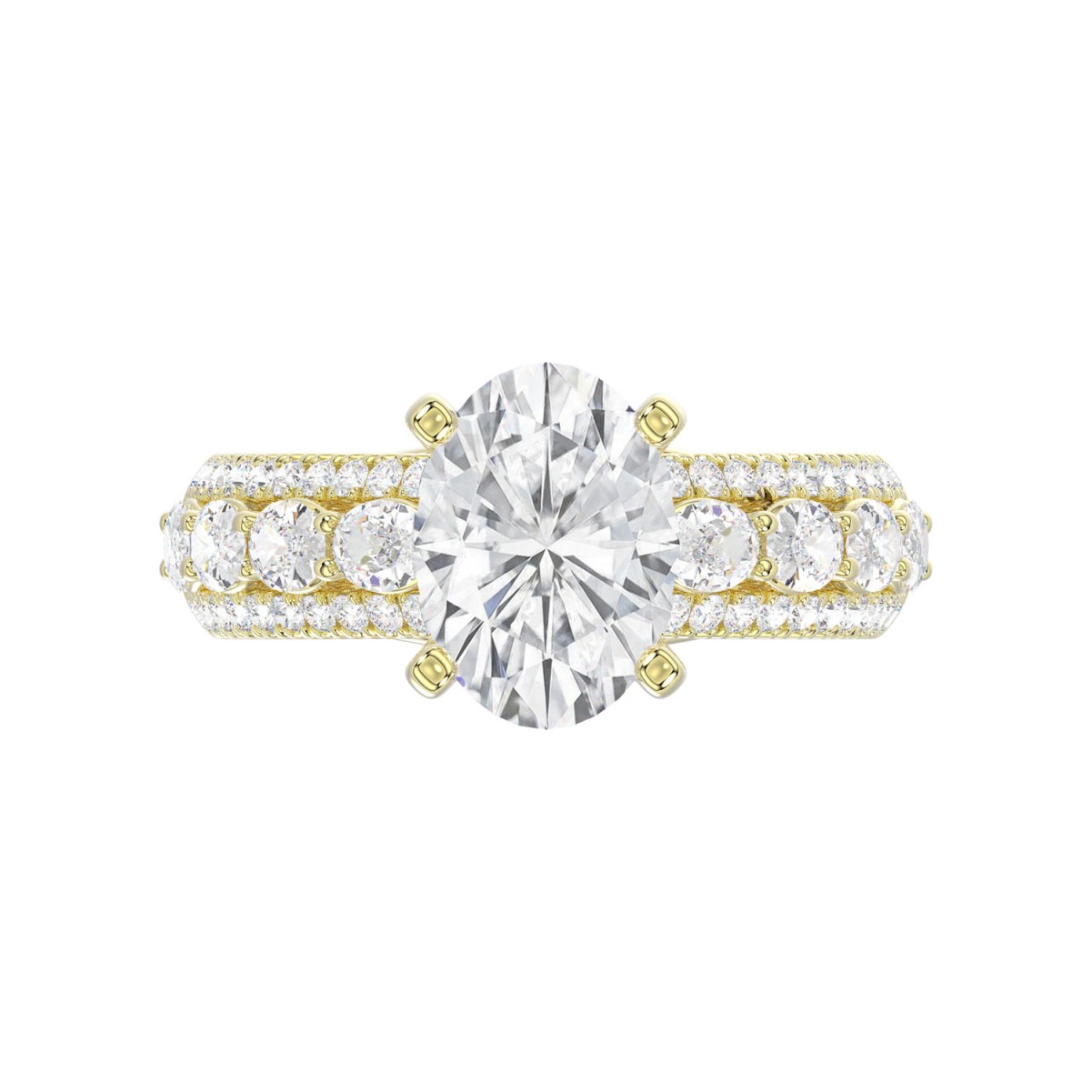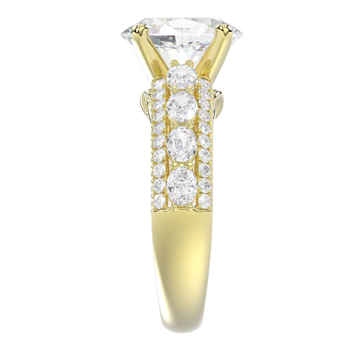 18K YELLOW GOLD 4 1/4CT ROUND/OVAL DIAMOND LADIES RING(CENTER STONE OVAL DIAMOND 3CT)