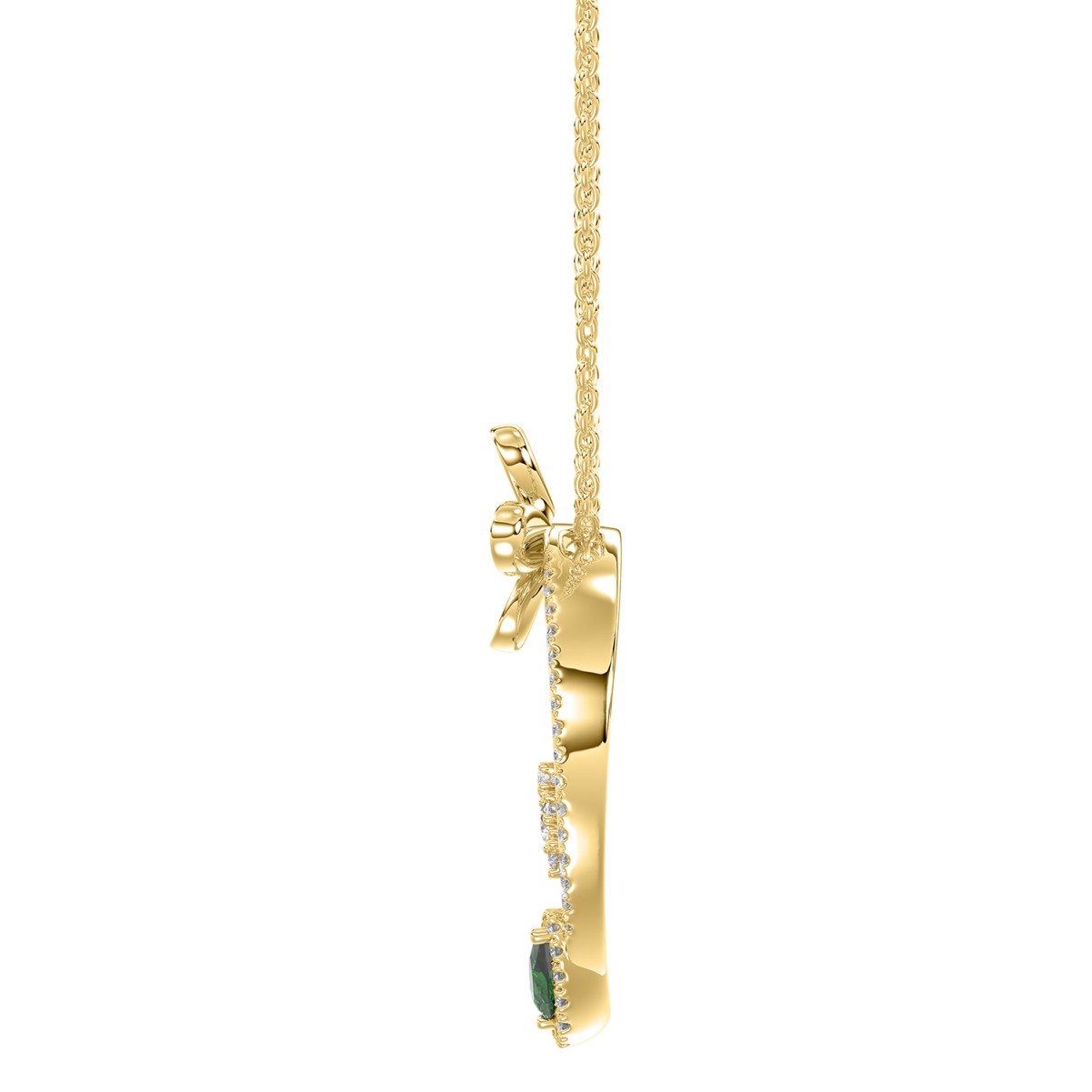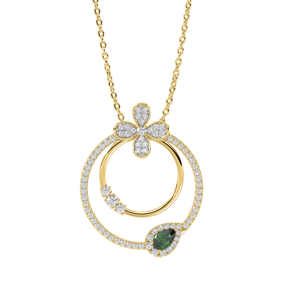 18K YELLOW GOLD 7/8CT ROUND/PEAR DIAMOND LADIES PENDANT WITH CHAIN(COLOR STONE PEAR GREEN EMERALD DIAMOND 1/5CT)