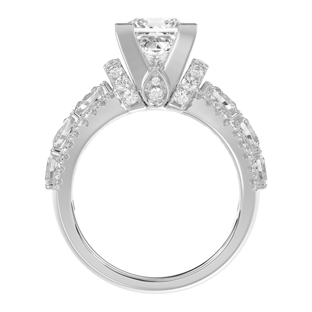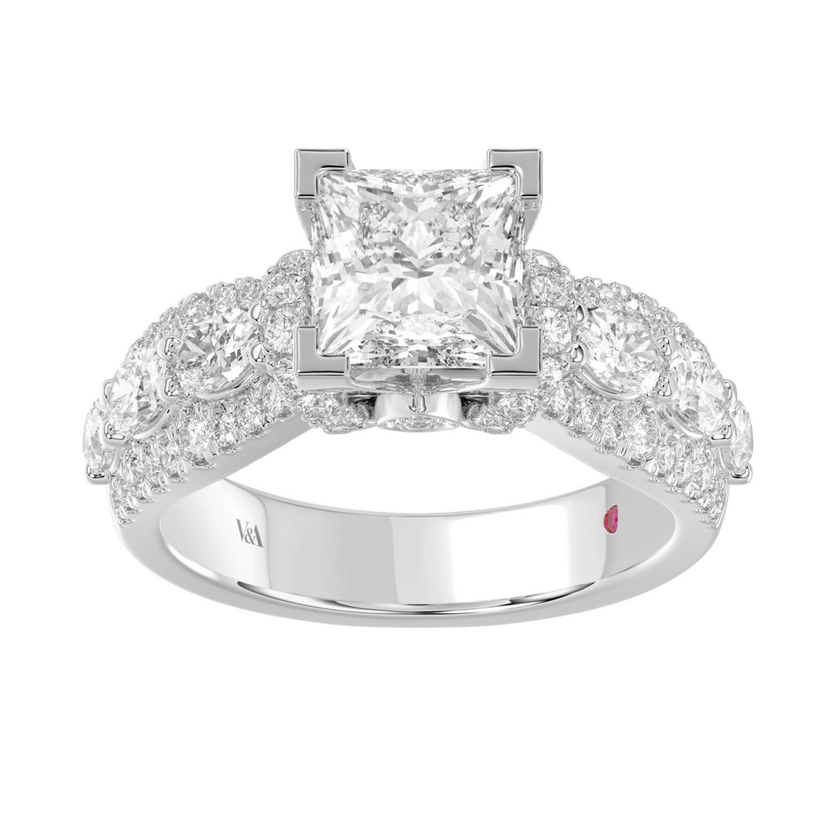 18L WHITE GOLD 3 1/4CT ROUND/PRINCESS/OVAL DIAMOND LADIES SEMI MOUNT RING(CENTER STONE MOUNT PRINCESS DIAMOND 2CT)
