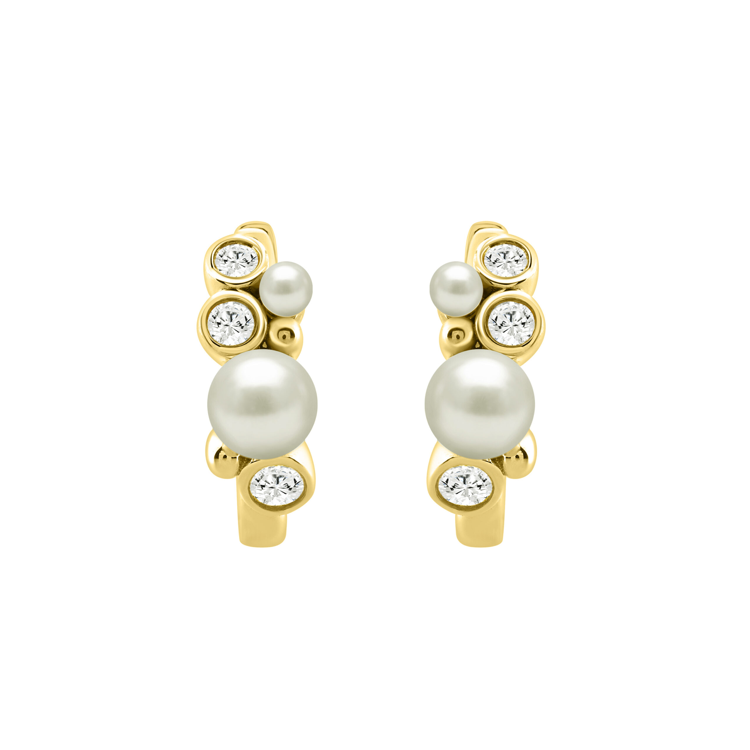 Elegant Ladies Hoop Earrings – 0.20Ct Round Diamonds With Pearl Cluster, 14K Yellow Gold