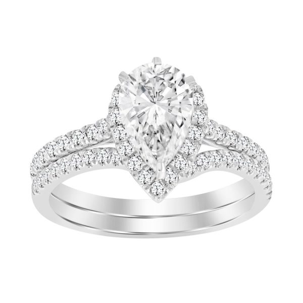 LADIES BRIDAL SET 0.50CT ROUND DIAMOND 14K WHITE GOLD