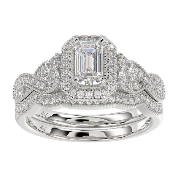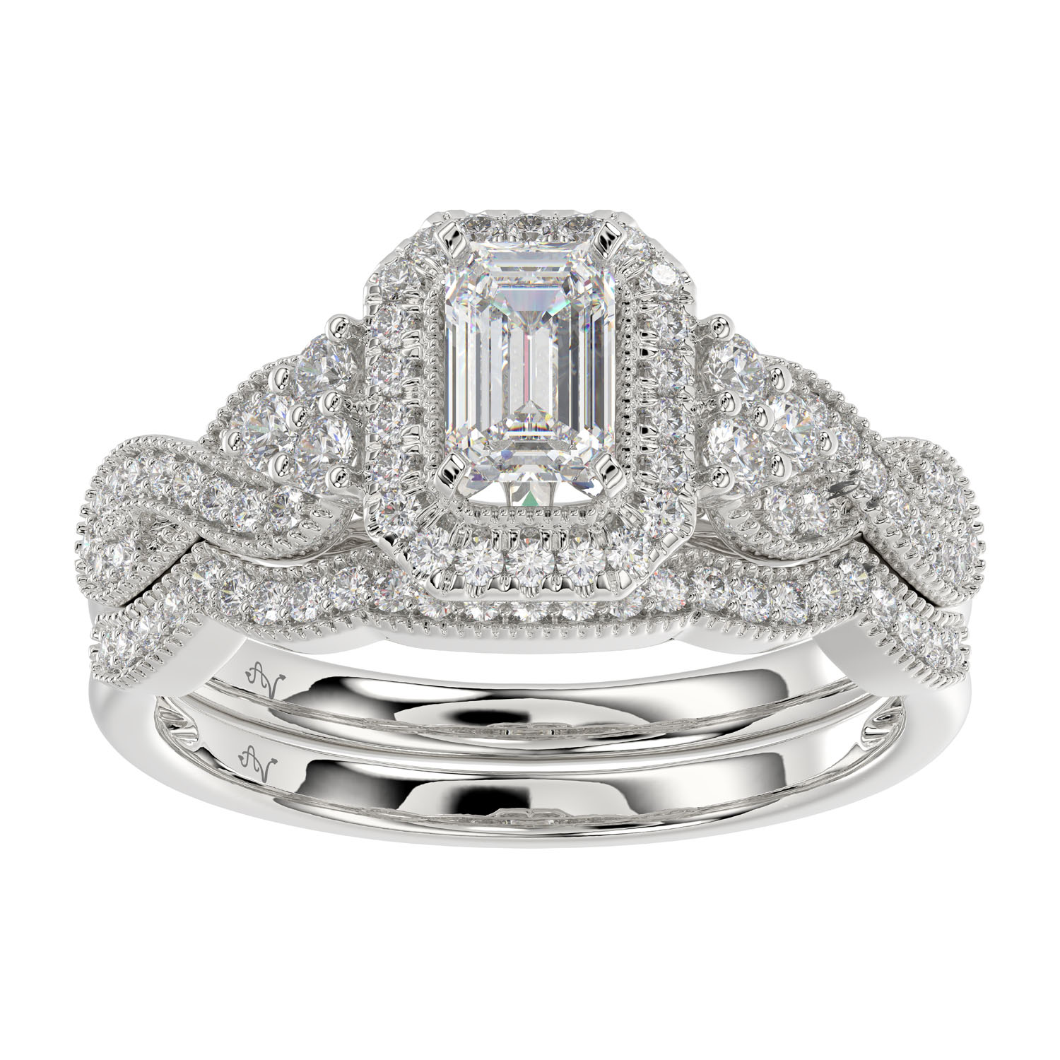 LADIES BRIDAL SET 1.00CT ROUND DIAMOND 14K WHITE GOLD (SI QUALITY) (CENTER STONE 0.50CT EMERALD DIAMOND)