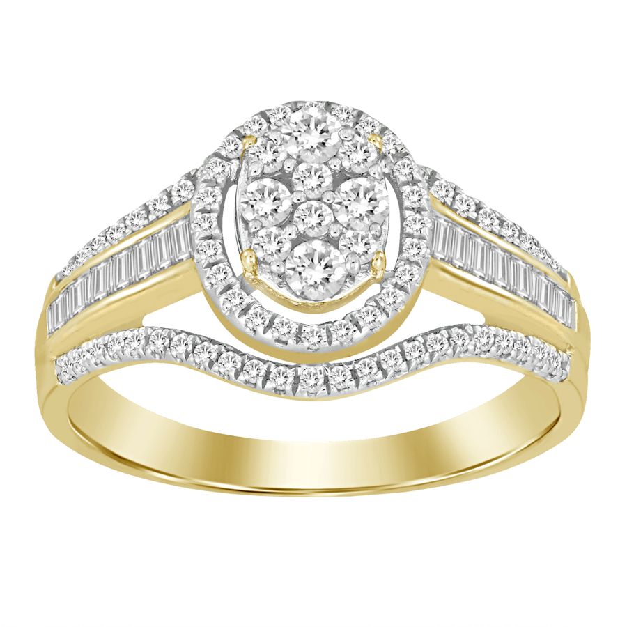 LADIES FASHION RING 0.50CT ROUND/BAGUETTE DIAMOND 10K YELLOW GOLD