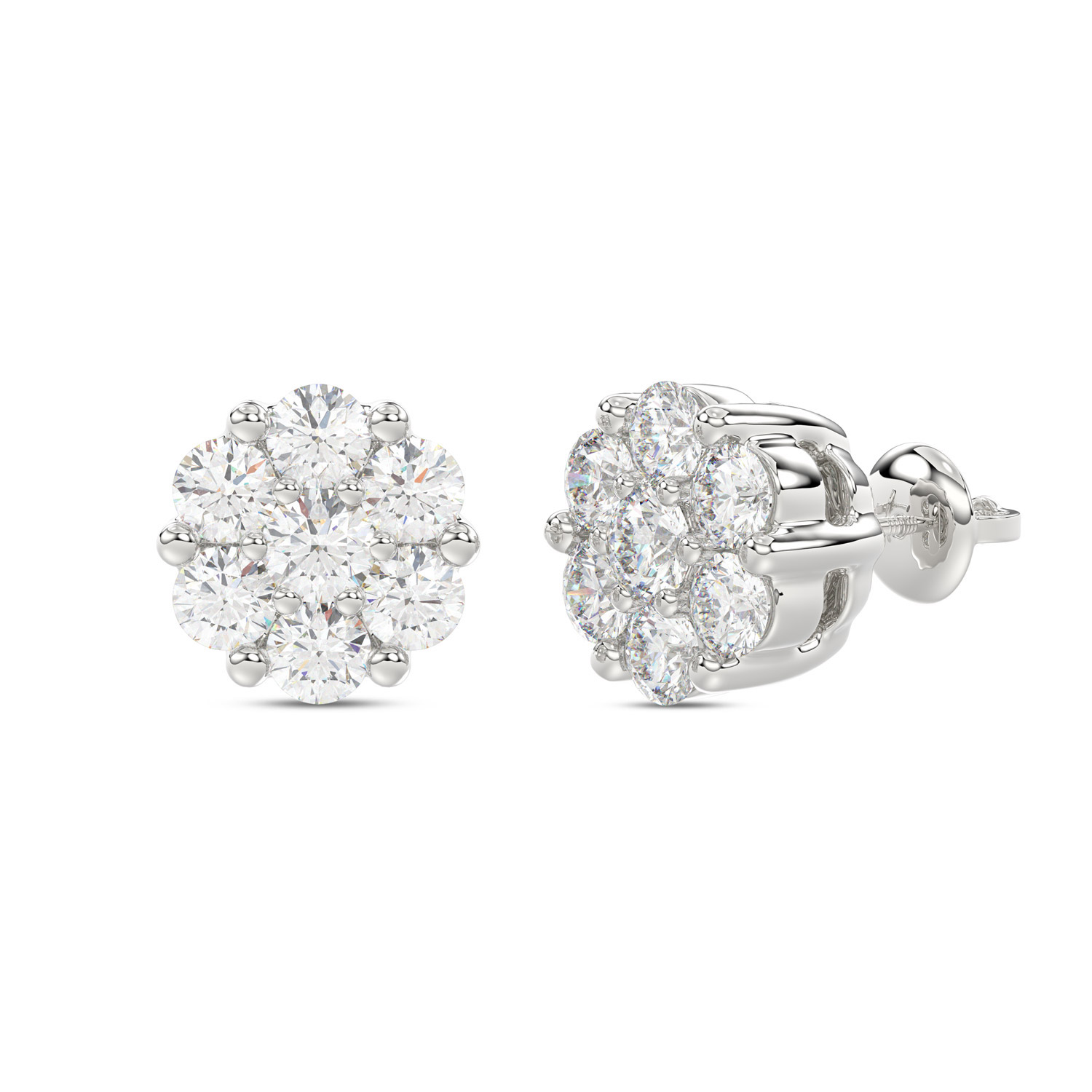 LADIES FLOWER EARRINGS 0.15CT ROUND DIAMOND 10K WHITE GOLD