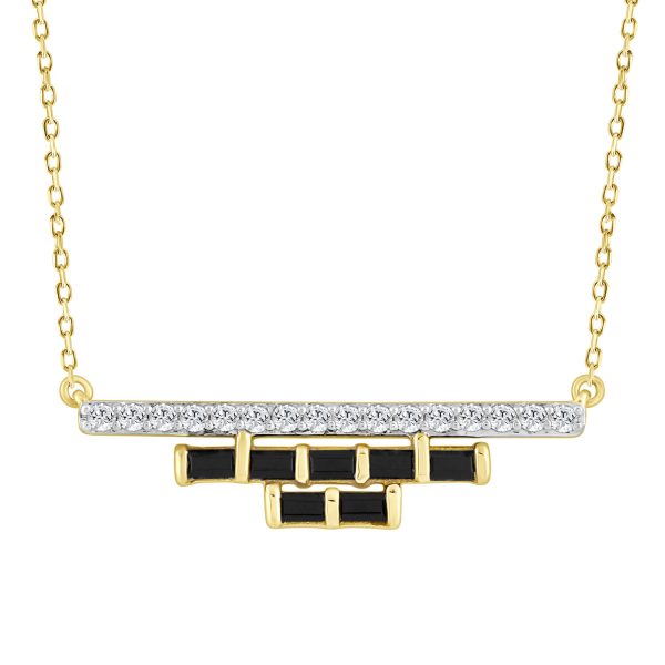 Home Necklaces LADIES NECKLACE 0.50CT ROUND/BLACK/BAGUETTE DIAMOND 14K YELLOW GOLD