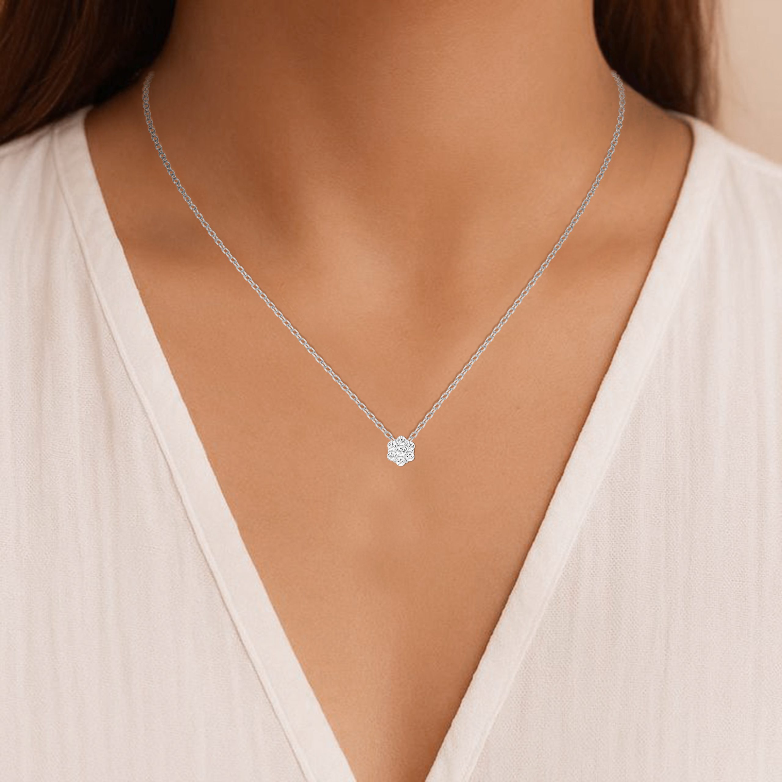 LADIES PENDANT WITH CHAIN 0.50CT ROUND DIAMOND 14K WHITE GOLD