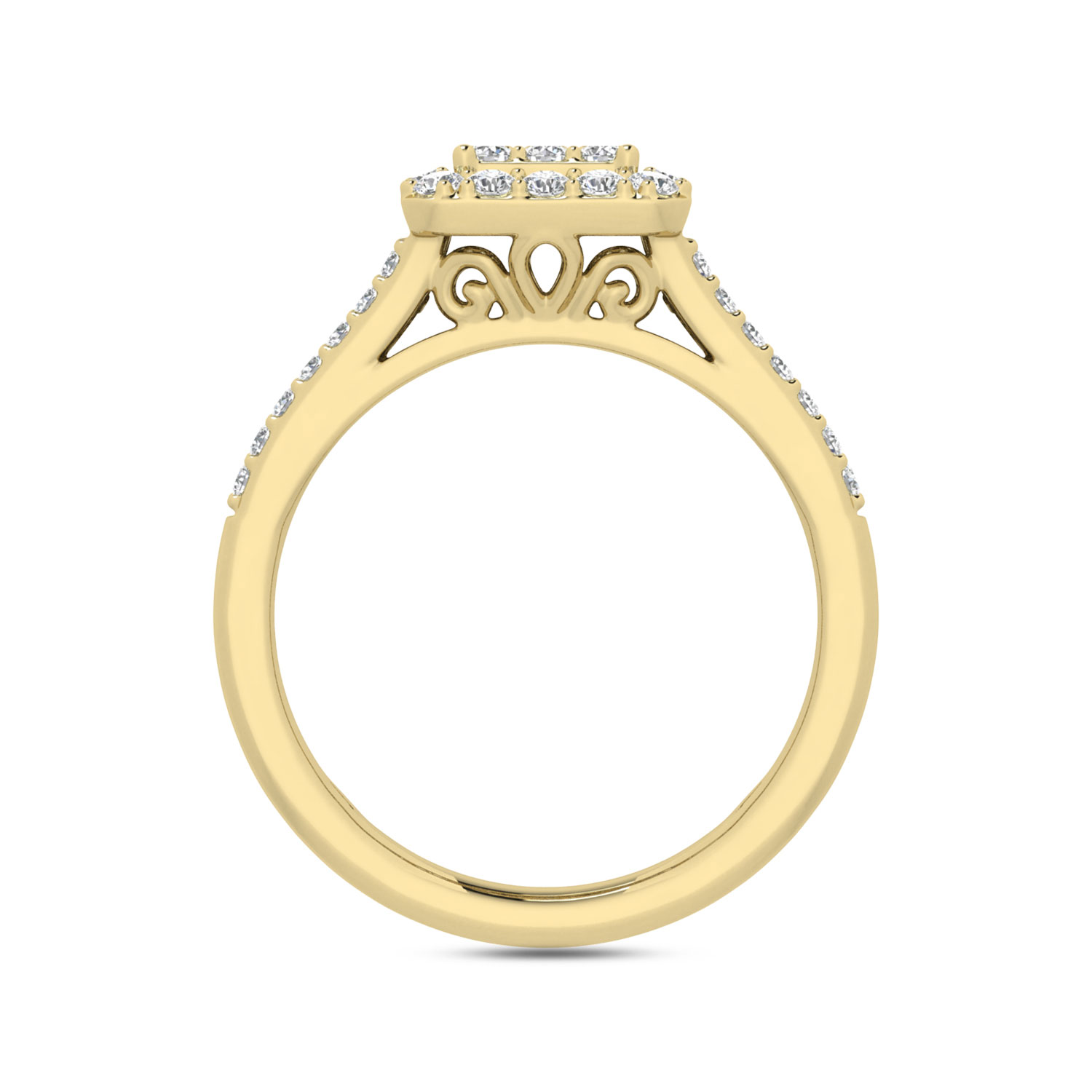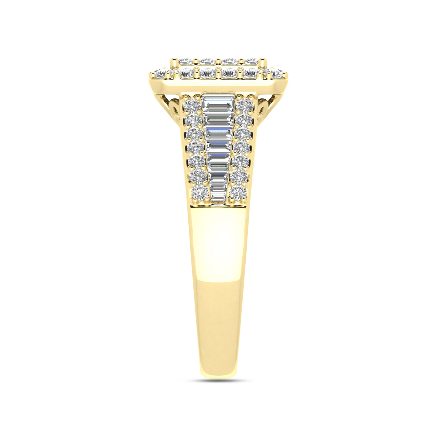 LADIES RING 1.00CT ROUND/BAGUETTE DIAMOND 10K YELLOW GOLD