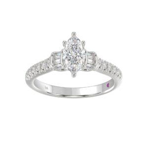 14K WHITE GOLD 1CT ROUND/MARQUISE DIAMOND LADIES RING(CENTER STONE MARQUISE DIAMOND 3/4CT)
