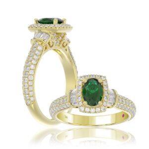 14K YELLOW GOLD 1 1/5CT ROUND/OVAL DIAMOND LADIES RING(COLOR STONE OVAL GREEN EMERALD DIAMOND 3/4CT)