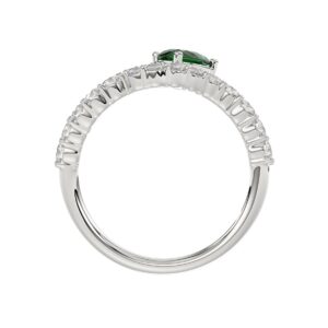 14K WHITE GOLD 1CT ROUND/PEAR DIAMOND LADIES FASHION RING(COLOR STONE PEAR GREEN EMERALD DIAMOND 1/2CT)