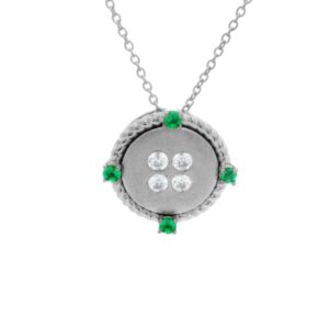 18K WHITE GOLD 5/8CT ROUND DIAMOND LADIES PENDANT (CENTER STONE ROUND/EMERALD DIAMOND 1/2CT)