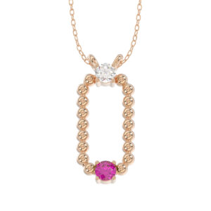 LADIES PENDANT WITH CHAIN 0.15CT ROUND/RUBY DIAMOND 14K ROSE GOLD (CENTER STONE ROUND/RUBY-0.10CT)