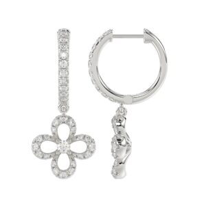 14K WHITE GOLD 7/8CT ROUND/OCTAGON DIAMOND LADIES EARRINGS