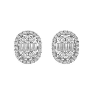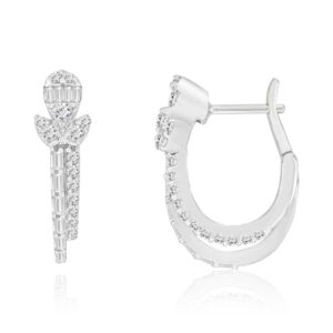 14K WHITE GOLD 1/2CT ROUND/BAGUETTE DIAMOND LADIES EARRINGS