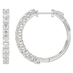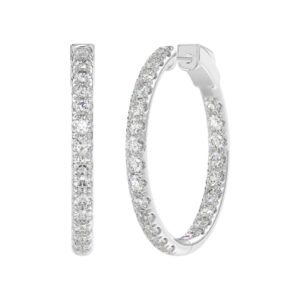18K WHITE GOLD 2CT ROUND DIAMOND LADIES HOOPS EARRINGS