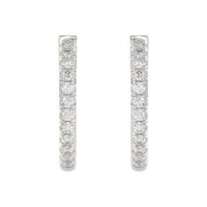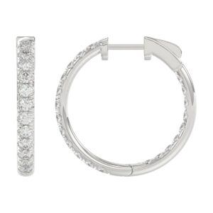 18K WHITE GOLD 1 1/2CT ROUND DIAMOND LADIES HOOPS EARRINGS
