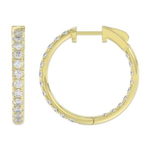 14K YELLOW GOLD 1 1/2CT ROUND DIAMOND LADIES HOOP EARRINGS