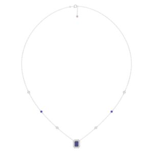 14K WHITE GOLD 7/8CT ROUND/EMERALD BLUE SAPPHIRE DIAMOND LADIES NECKLACE
