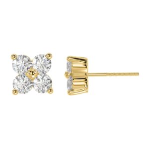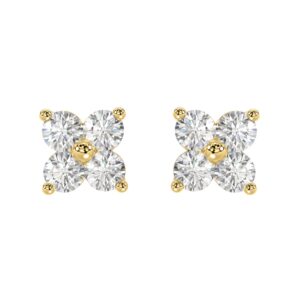18K YELLOW GOLD 1CT ROUND DIAMOND LADIES FLOWER EARRINGS
