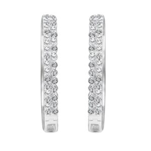 LADIES HOOP EARRINGS 1.00CT ROUND DIAMOND 14K WHITE GOLD