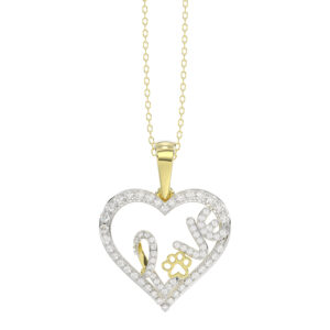 ELEGANCEÂ 10K YELLOW GOLD 0.15CT TWISTED CIRCLE HEART & LADIES PENDANT ROUND DIAMOND WITH CHAIN