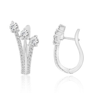 18K WHITE GOLD 1.00CT ROUND DIAMOND HOOP EARRINGS