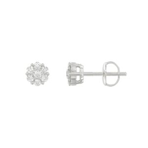 14K WHITE GOLD 1/6CT ROUND DIAMOND LADIES FLOWER EARRINGS