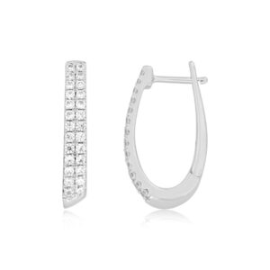 18K WHITE GOLD 1/2CT ROUND DIAMOND LADIES HOOPS EARRINGS